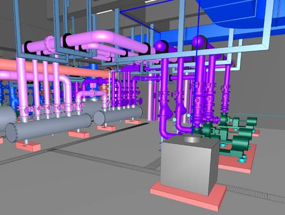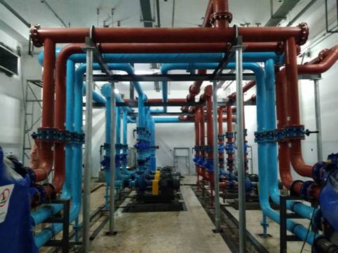 本项目位于河南省许昌市万达广场,机房位于地下一层,建筑面积为155平方米,机房设计14台设备,分别为2台冷水机组、3台冷冻水泵、3台冷却水泵、2台全程综合水处理器,2台补水泵,1套全自动软水器,1个软化水箱。管道工程量为266米,最大管道为DN250,管道材质分别为≤DN80为镀锌钢管、DN150焊接钢管、DN200无缝钢管、DN250螺旋钢管。