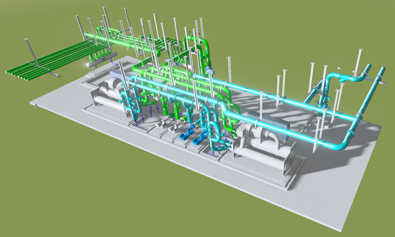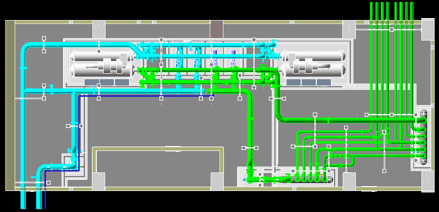 本项目位于成都市地铁5号线九道堰站,项目主体建筑面积17731.10平方米,车站全长306.4米,其中冷水机房位于站厅层A端,面积为206平方米,机房内设计为8台设备,分别有2台冷水机组、2台冷冻水泵、2台冷却水泵、2台全程综合水处理器,总共8台设备,管道工程量295米,最大管径为DN250,管道材质分别为无缝钢管和镀锌钢管。