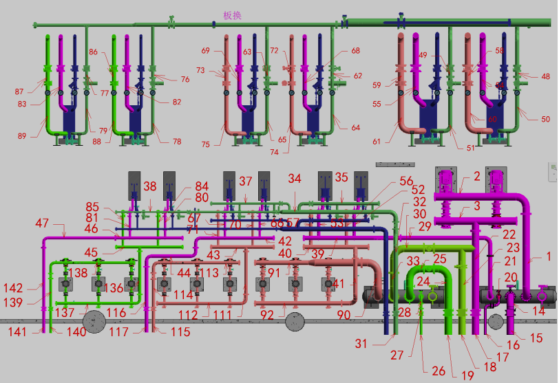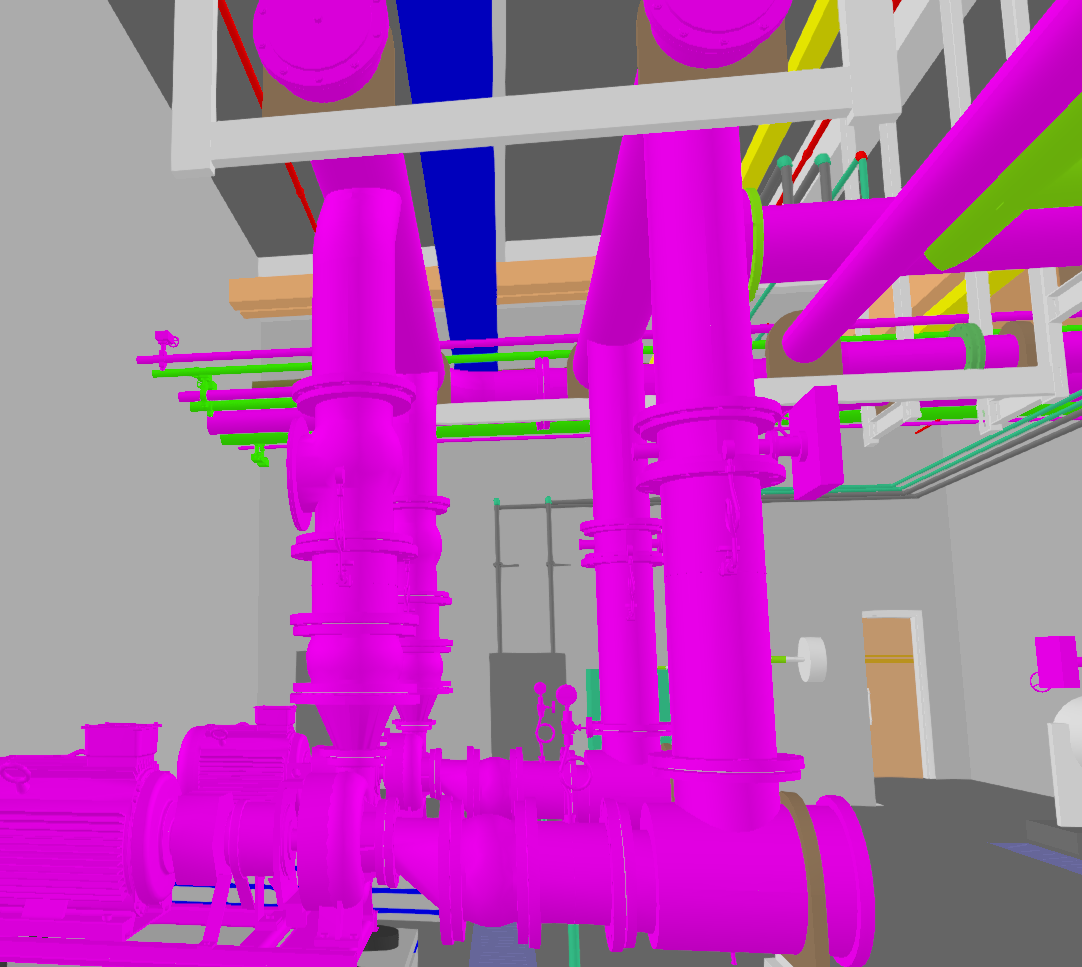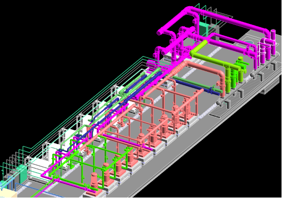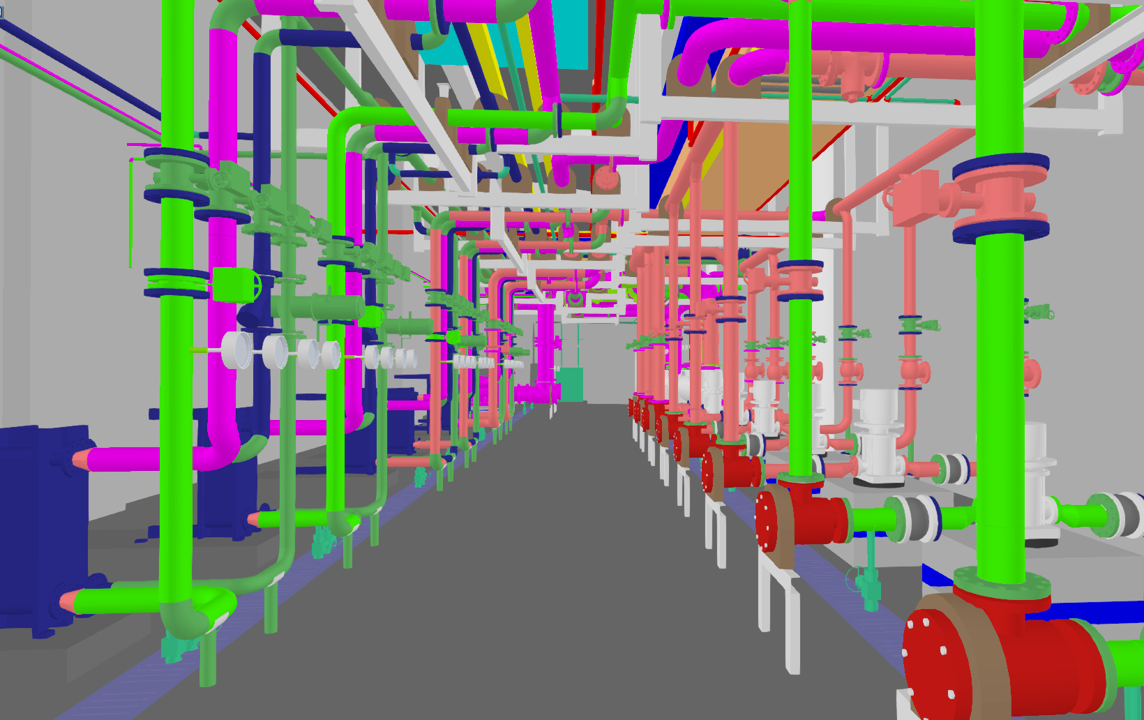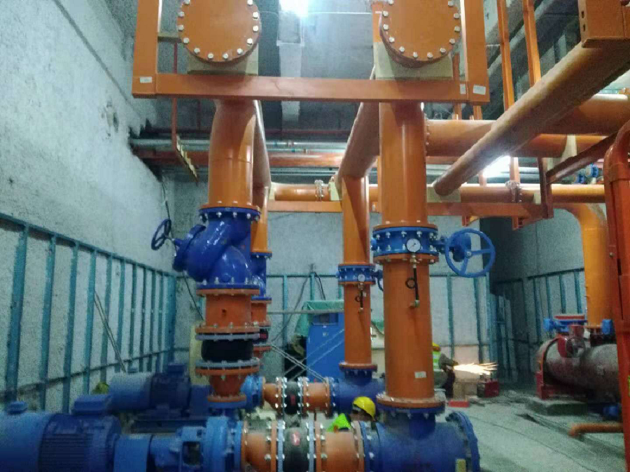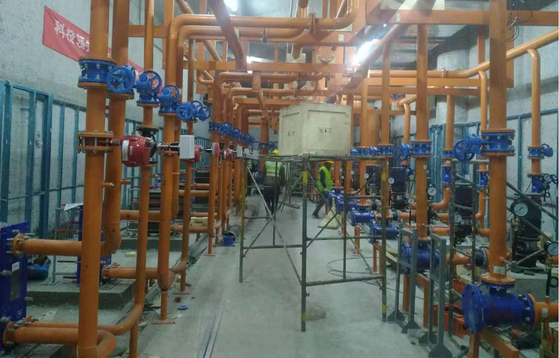 北京新机场位于永定河北岸,北京市大兴区榆垡镇、礼贤镇和河北省廊坊市广阳区之间,航站楼及换乘中心工程为航站区项目子项工程,航站楼及换乘中心地上5层,地下2层,建筑高度为50m,建筑总建筑面积804130㎡。其中需预制加工换热站房位于地下2层,建筑面积大约为434㎡,大小设备共31台,管道共600m。