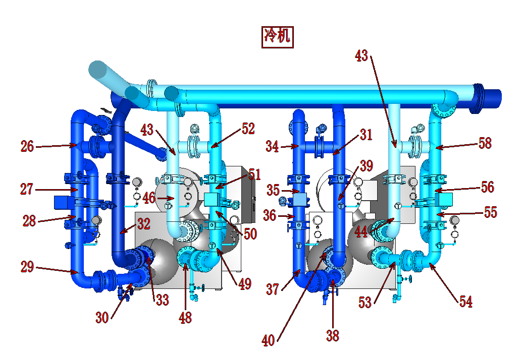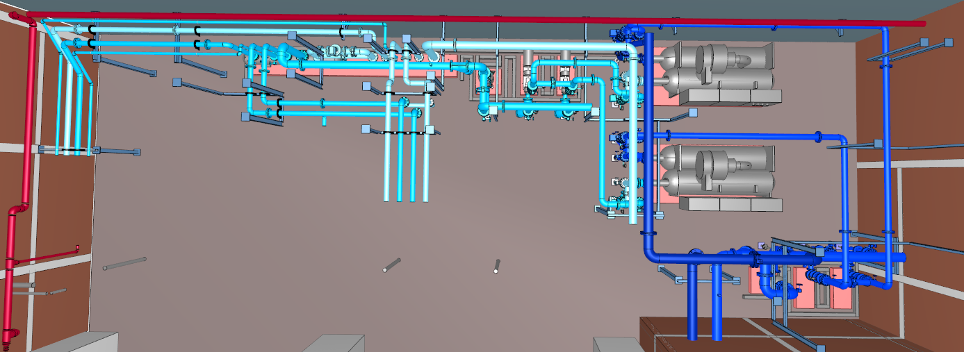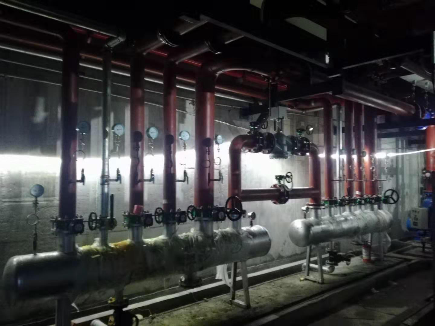 本项目位于成都市地铁5号线皇花园站,本站主体建筑面积为11307.90m2, 车站全长262.5米,其中冷水机房位于站厅层大里程端,面积为370平方米,机房内设计为8台设备,分别有2台冷水机组、2台冷冻水泵、2台冷却水泵、2台全程综合水处理器,总共8台设备,管道工程量306米,最大管径为DN250,DN80以下(含DN80)为镀锌钢管。