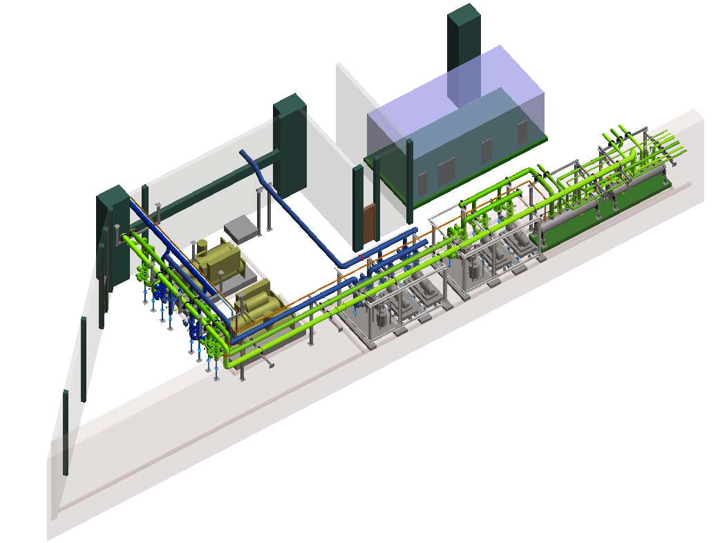 项目简介:制冷机房位于地下一层,建筑面积360㎡,分段式+模块式安装。