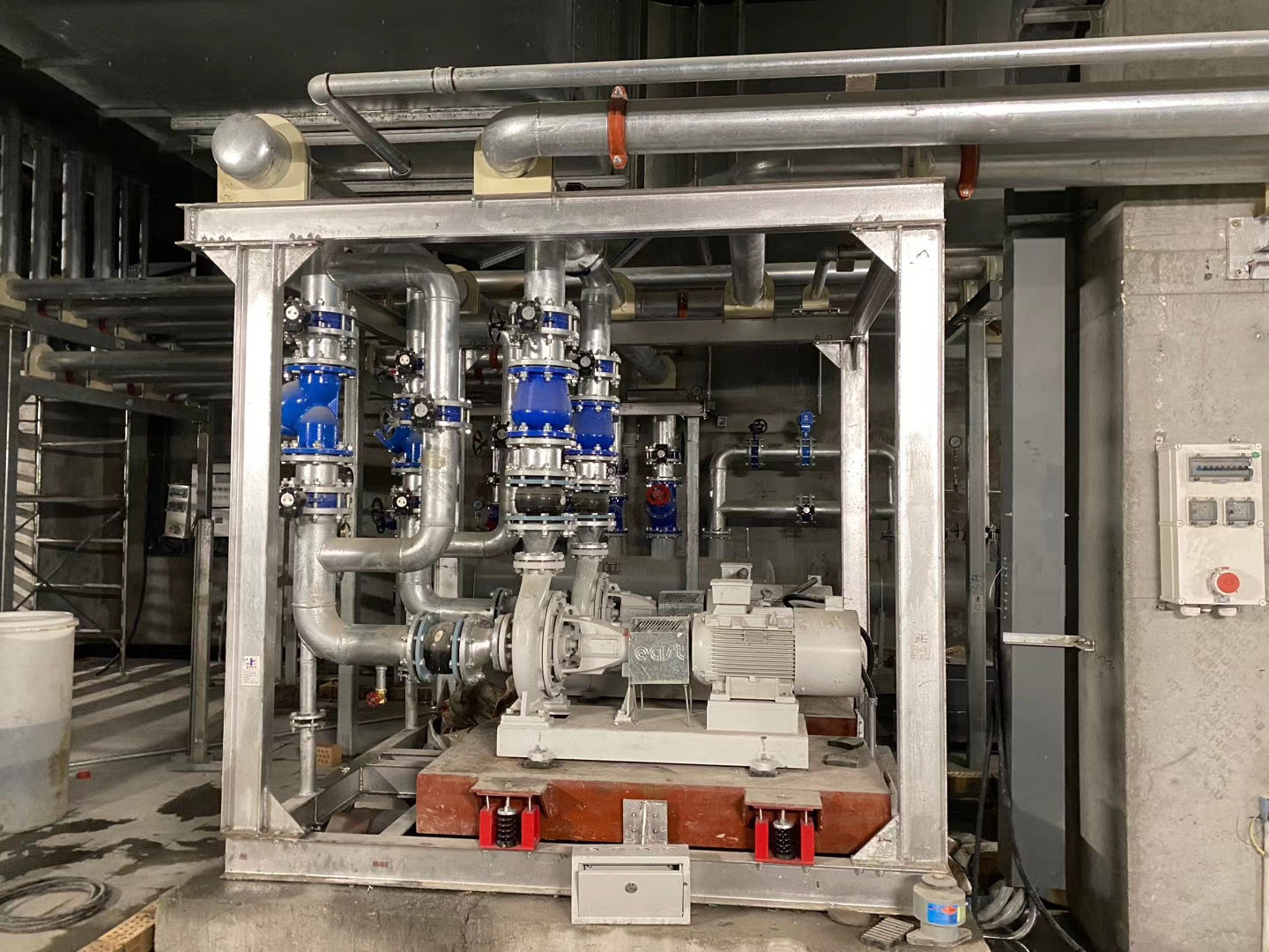 项目简介:制冷机房位于地下一层,建筑面积150㎡,整体镀锌+模块式安装。