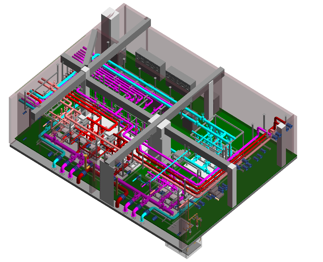 项目特点难点:消防泵房空间较小,阀门数量多,且泵房内风管、桥架、重力排水管较多且标高低,整体排布难度较大。