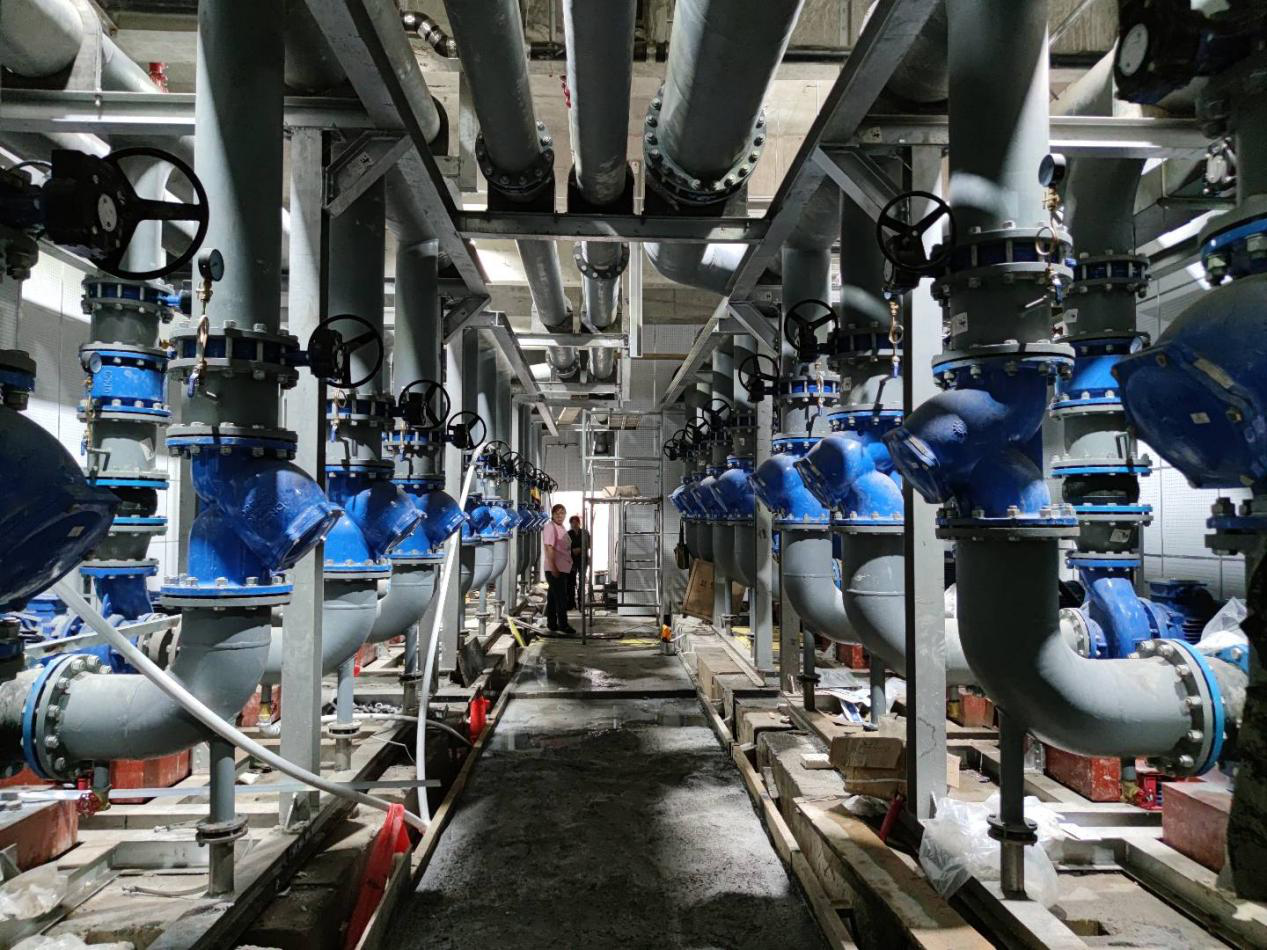 项目简介:本工程为西安市西安站改扩建工程之新建西安站站房,总建筑面积77100平方,工程性质为特大型旅客站房。其中制冷机房位于地下三层,建筑面积为680平方,二次泵房位于地下二层,建筑面积206平方。机房采用泵组模块+分段式式安装。管道工程量:764m(DN15~DN900)